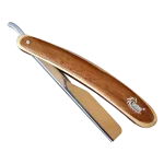 Barbera o navaja para afeitar o razurar en acero de alta calidad en color plata y cabo o mango en madera. De cuchilla intercambiable con sistema tipo mariposa de alta seguridad.
